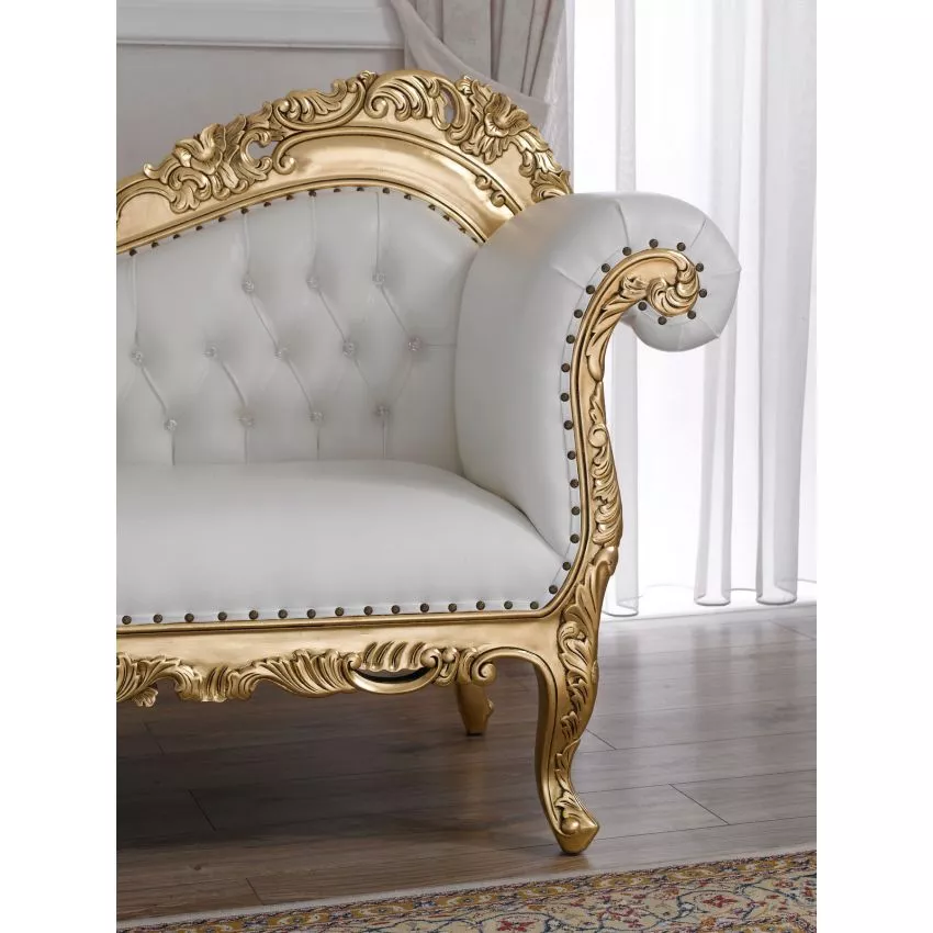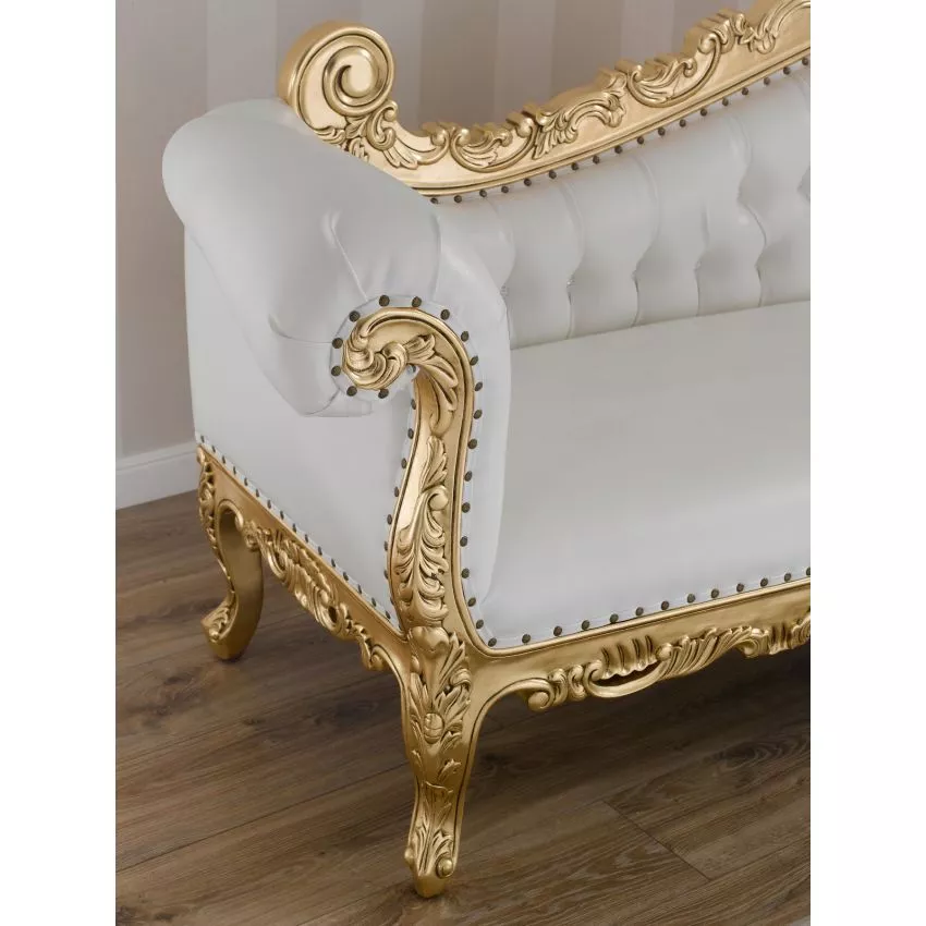 Alejandra Hand Carved Teak Wood Leatherette 3-Seater Chaise Longue Sofa Golden Leaf ( White )