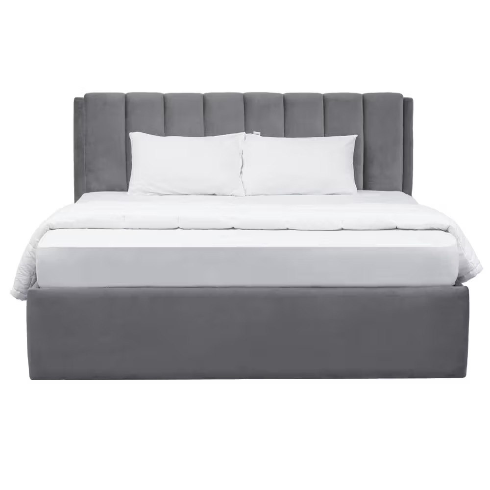 Discover the pinnacle of luxury and comfort with the Natural Art & Crafts Antho Luxurious King Size Bed. Expertly crafted with a premium teak wood frame, this bed offers unparalleled durability and style. The soft grey velvet upholstery exudes elegance and sophistication, making it a perfect centerpiece for modern bedroom decor.