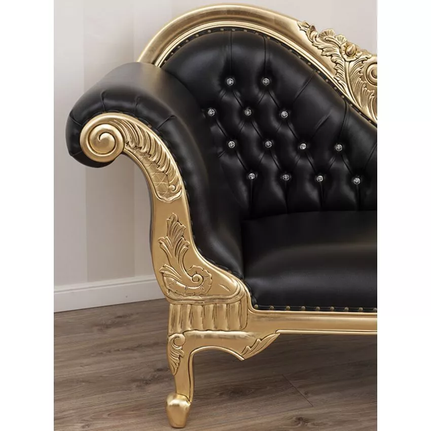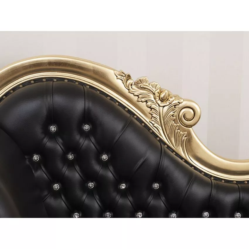 Baroque Style Hand Carved Button Tufted Teak Wood 3-Seater Chaise Longue ( Black & Golden )