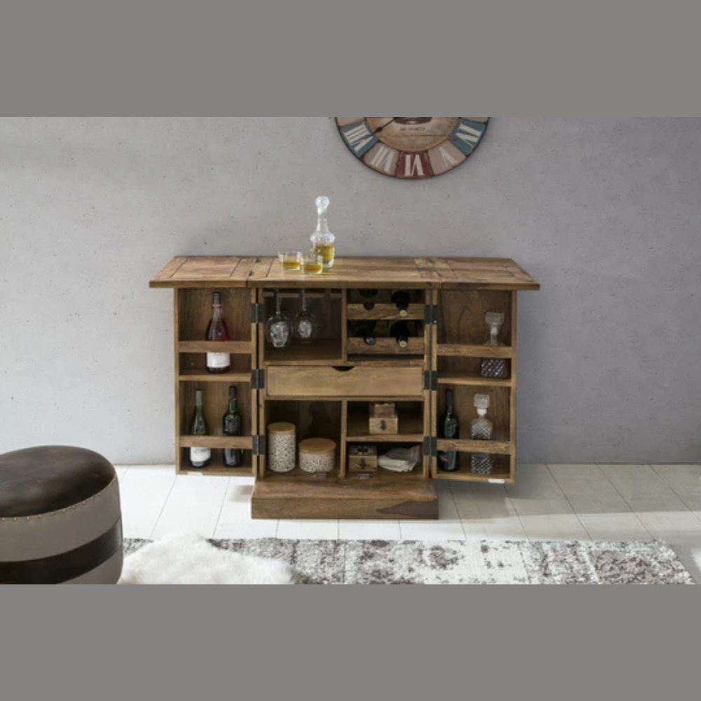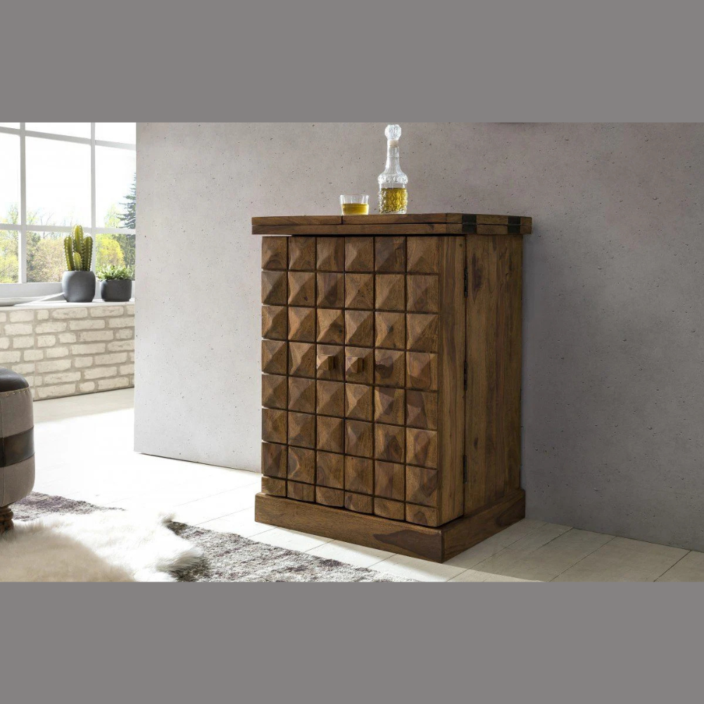 Elevate your home bar setup with the Natural Art & Crafts Handmade Teak Wood Bar Cabinet, a stunning blend of rustic elegance and modern design. This bar cabinet offers ample storage for your favorite wines, liquors, and glassware, making it the perfect centerpiece for any living room, dining area, or entertainment space. Expertly crafted from premium teak wood, this cabinet not only provides durability but also adds a timeless touch of sophistication to your home. The cabinet’s sleek design ensures it fits seamlessly into both classic and contemporary decor styles, offering both function and aesthetic appeal.