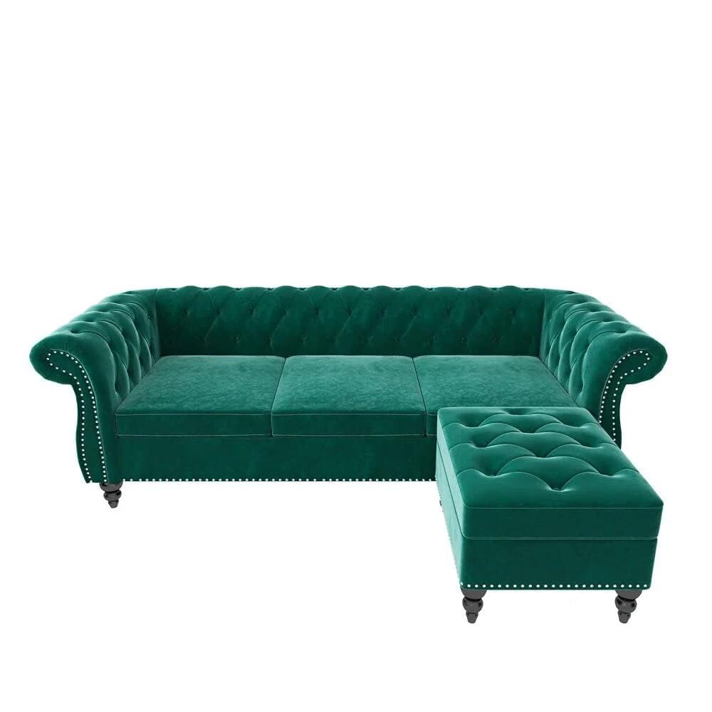 Elevate your living space with the Natural Art & Craft Chesterfield Handmade Teak Wood 3-Seater Sectional Sofa Set with Ottoman. This luxurious sofa set features a classic button-tufted design, crafted with premium teak wood for durability and timeless elegance. The plush upholstery provides exceptional comfort, making it perfect for relaxing or entertaining guests. The included ottoman adds versatility and style, completing the set for a sophisticated look. Ideal for traditional or modern decor, this chesterfield sofa set is a statement piece that blends functionality with unmatched craftsmanship.