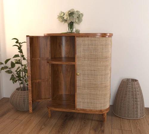 Hunky Curve Rattan Rosewood Door Cabinet Storage Rustic Storage Organizer for Home Décor