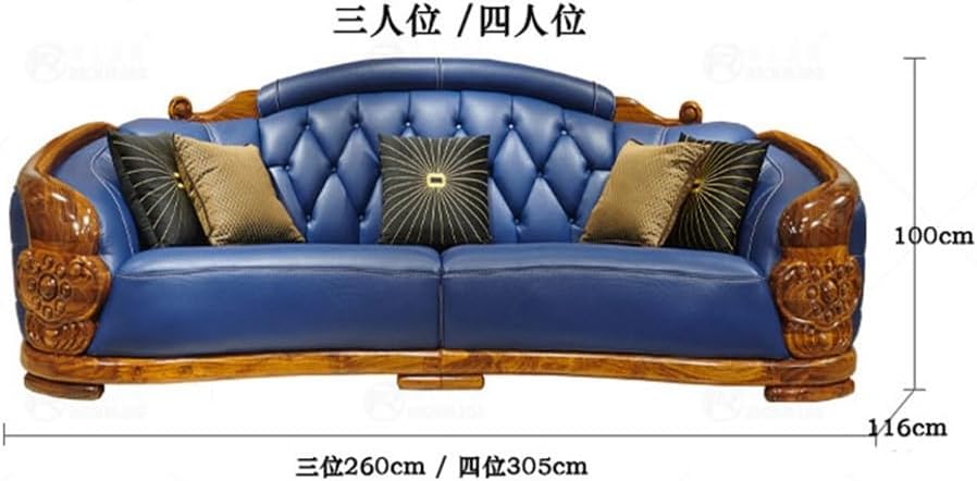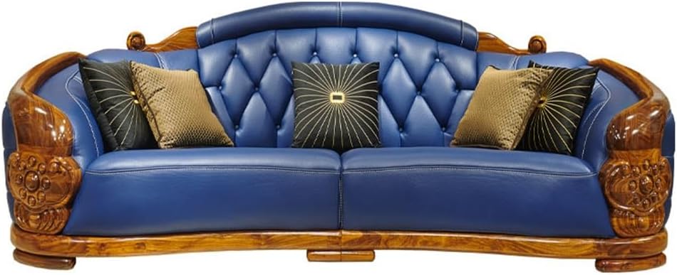 European Style Hand Carved Teak Wood Leatherette 3 Seater Chaise Lounge Sofa With Cushions
