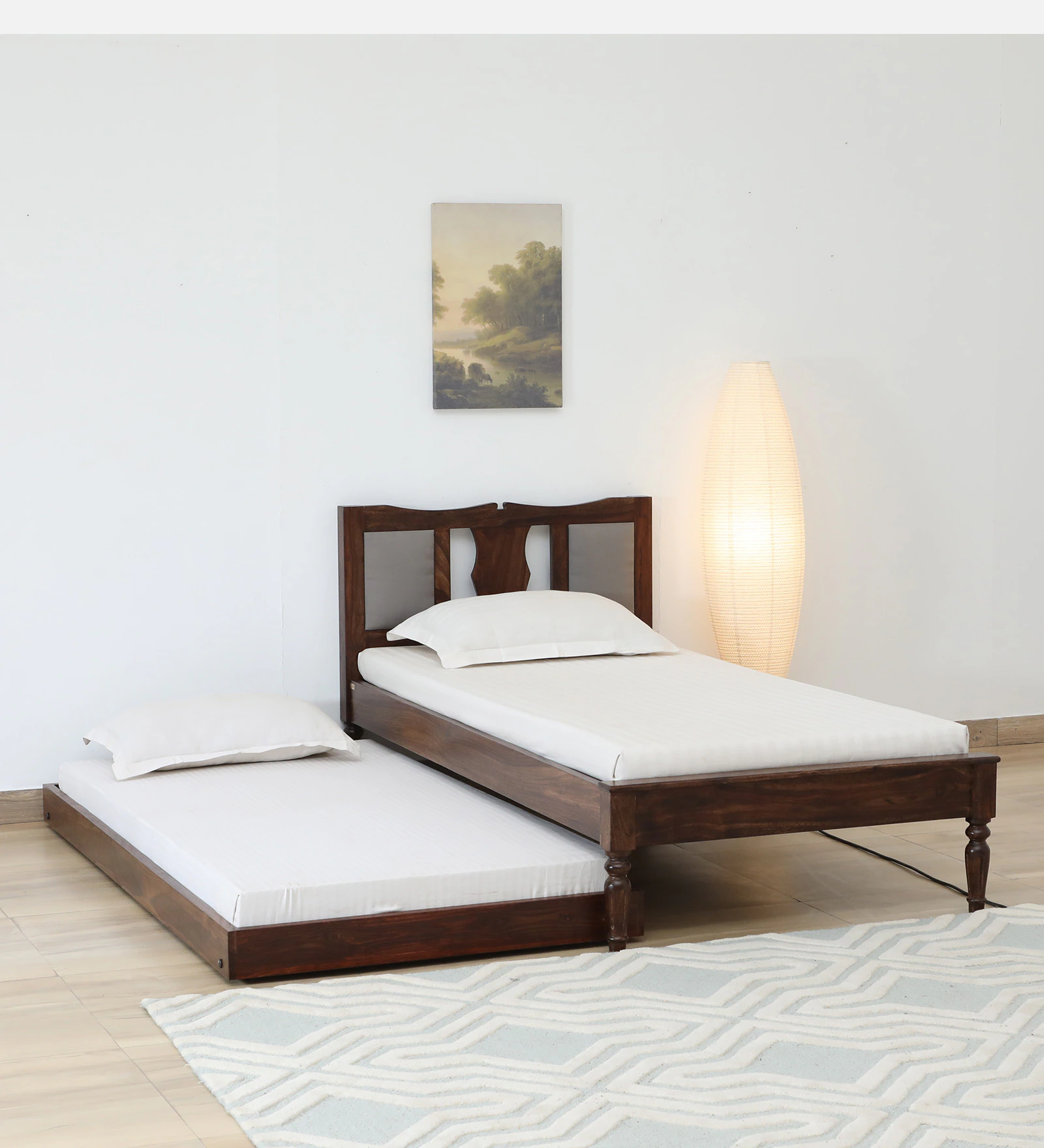 The Natural Art & Craft Sheraton Handmade Teak Wood Single Bed offers timeless elegance combined with practical functionality. Expertly crafted from high-quality teak wood, this single bed features a classic Sheraton design and a provincial teak finish that adds a touch of sophistication to any bedroom. The included trundle is perfect for maximizing space, making it ideal for guest rooms, kids’ rooms, or small living spaces. With its durable construction and artisan craftsmanship, this bed is built to last and provides a comfortable sleeping solution with added storage.