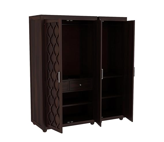 NATURAL ART & CRAFT: Introducing the NATURAL ART & CRAFT Wardrobe, a hallmark of sophistication and functionality for your home. Crafted with precision using premium TEAK wood, this almirah stands as a testament to timeless elegance and durability. Ideal for both the living room and bedroom, it offers unparalleled storage solutions with a touch of classic design. Designed to elevate your living space, this large cupboard storage cabinet is more than just a piece of furniture—it’s an embodiment of style and utility. The natural grains and rich texture of TEAK wood add an inviting warmth to any room, blending seamlessly with various Decor styles, from contemporary to traditional. The thoughtful layout and spacious compartments of this wardrobe ensure efficient organization of your clothing essentials. It features multiple shelves, drawers, and hanging rods, allowing you to neatly arrange and access your clothes, accessories, and linens. Whether it’s your everyday wear or seasonal garments, everything finds its designated place within this wardrobe. Crafted with meticulous attention to detail, the ALMIRAH Furniture Wooden Wardrobe prioritizes sturdiness and longevity. The robust construction ensures that it stands the test of time, providing reliable storage for years to come. Moreover, backed by a 12-month warranty, you can have peace of mind knowing that your investment is protected against manufacturing defects. Beyond its practicality, this wardrobe embodies a blend of functionality and aesthetics. Its sleek design not only maximizes storage space but also enhances the visual appeal of your room, making it a focal point of admiration for guests and family alike. Upgrade your home with the NATURAL ART & CRAFT Wardrobe—a testament to quality craftsmanship, durability, and versatile design. Transform your space into a haven of organization and sophistication with this TEAK wood almirah that transcends trends..