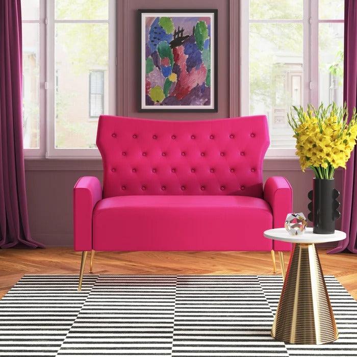 Natural Art & Craft Wooden Square Arm Loveseat Wing Back Chair Set 2+1+1 with Metal Legs ( Pink )