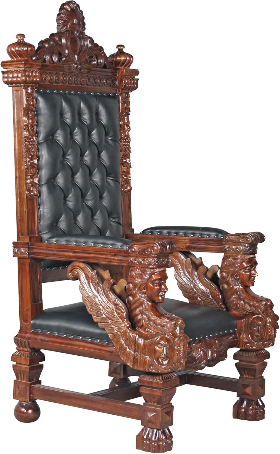 Bring the elegance of royalty into your home with the Natural Art & Toscano Design High Back Royal Throne Chair. Meticulously handcrafted from premium Teak Wood, this luxurious throne features a high back design adorned with intricate carvings and crystal buttons for a truly majestic presence. The faux leather upholstery combines style and durability, making it a perfect centerpiece for living rooms, dining areas, and special events. Whether you are hosting an elegant gathering or looking for a statement piece for your home décor, this throne exudes classic Baroque-inspired beauty, designed for those who appreciate the finer things in life.