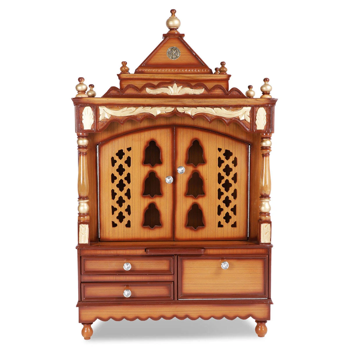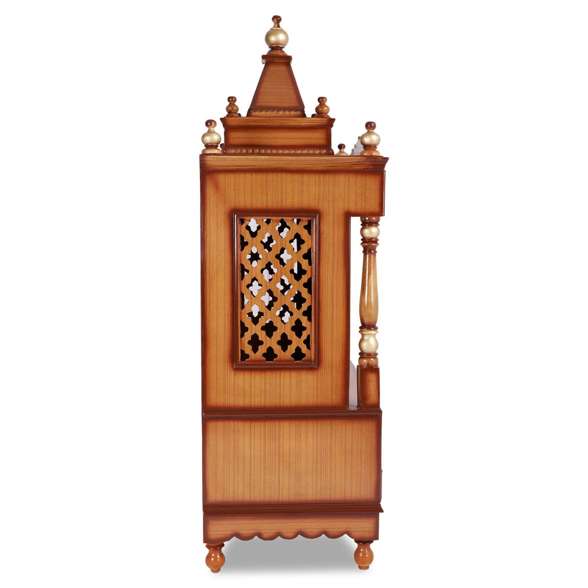 Its compact yet spacious design is ideal for small to medium-sized homes, offering enough room to place your idols, incense holders, and prayer essentials. The elevated platform and ornate details reflect classic Indian temple architecture, creating an authentic sacred environment for your daily worship.