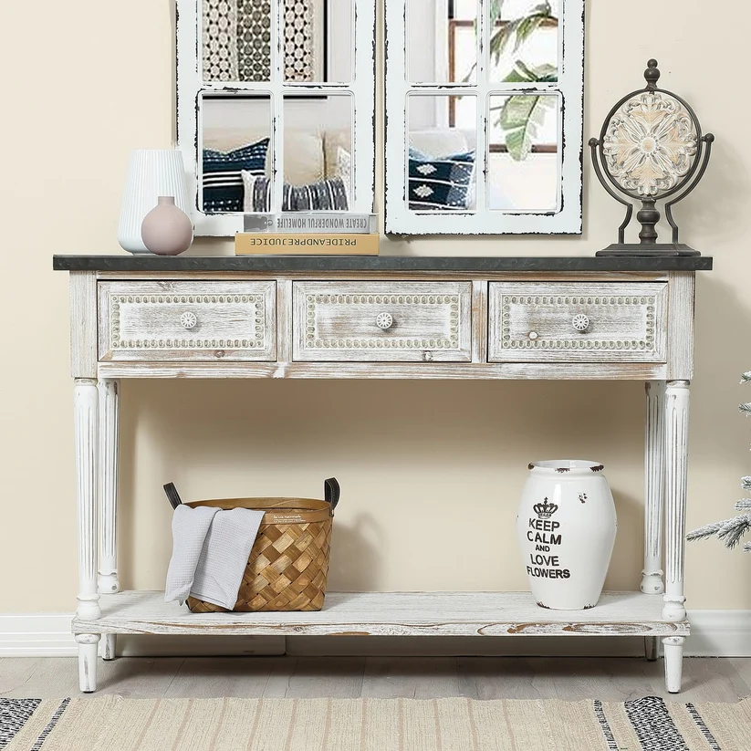 A wooden console table is perfect for entryways, hallways, and behind sofas.